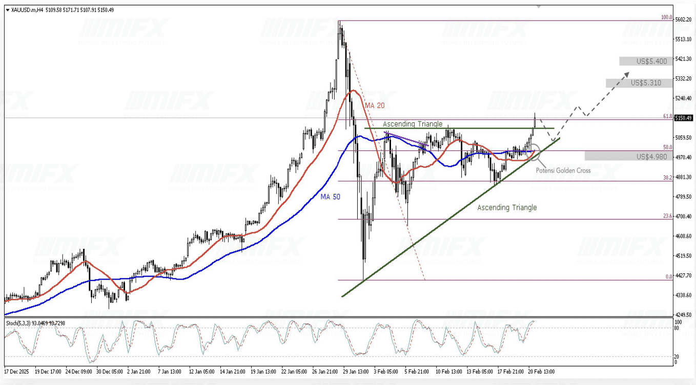 MOMENTUM BREAK – Pergerakan Produk yang SignifikanPergerakan Gold kembali menembus ke atas level US$5.100 per troy ons pada pekan lalu setelah mengalami tren penurunan dalam waktu singkat. Volatilitas Gold juga masih sangat tinggi. Di sisi lain, EURUSD terus mengalami tekanan hingga menyentuh level terendah dalam satu bulan.